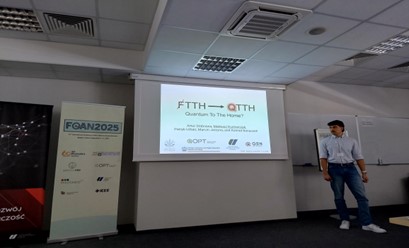QOPT staff participated in FOAN2025 – the 13th International Workshop on Fiber Optics in Access Networks which took place on 9-11 September 2025 in Szczecin, Poland. QOPT was also delighted to support FOAN2025 as one of the event sponsors. The meeting was a great opportunity to highlight the potential of Optical Key Distribution (OKD) technology developed at QOPT for practical deployment in access networks. This application area is particularly promising, as alternatives such quantum key distribution would incur significantly higher hardware overheads. The conference programme included a talk “QTTH – Quantum to the Home?” presented by QOPT employee Mr Mateusz Kucharczyk, who discussed OKD in comparison to other methods for key distribution.